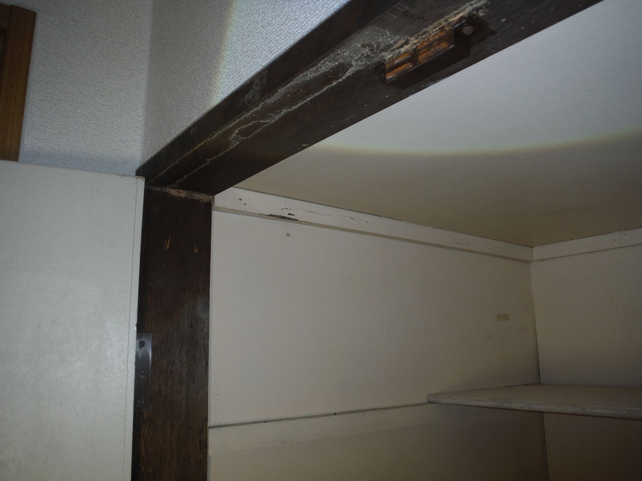手前の開口部から奥の木枠にかけて食害が見られるのがわかりますか?